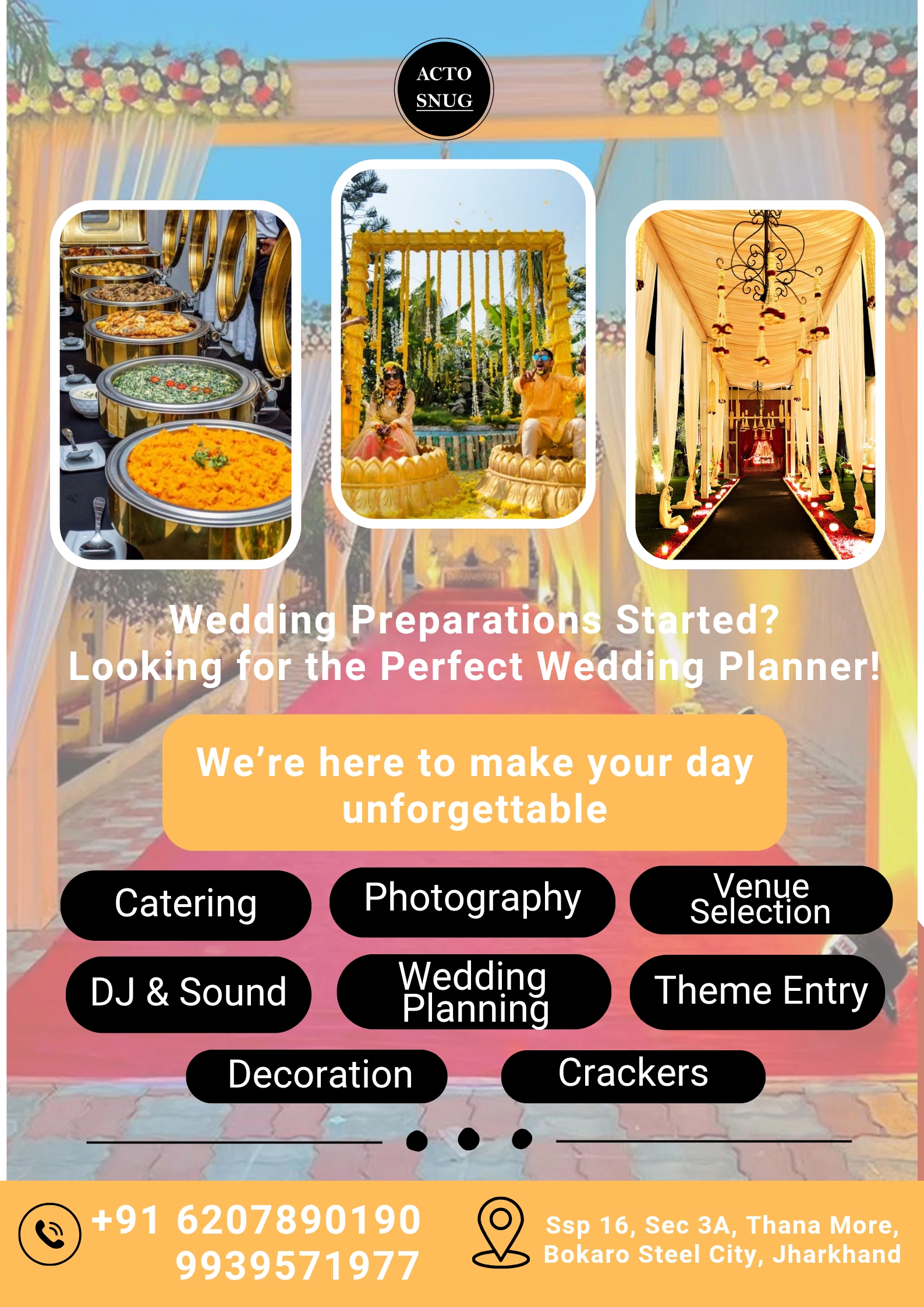 Wedding events, Birthdays , Anniversary celebration, family function, House warming ceremony, Corporate and Office parties, Social/NGO Events, Sports Events, Brand Promotion and Product Launch, Symposium, Fests and school/college functions .